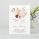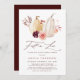Inbjudningskort för möhippan har vattenfärgsvit och gult pumpor som är adorberade med burguner, maron och rosa blommor över höst löv. Om du vill ha en mer avancerad anpassning av den här designen klickar du på länken Anpassa ytterligare. Matchande objekt är också tillgängliga.