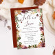 Detta är en rustik och elegant inbjudningskort för möhippan, som använder en modern blommigt- och bladdesign i vattenfärg och texten "Fall in Kärlek" i ett handskript i lårbenet. I paletten färg finns rik höst färger, t.ex. brännskador, bränd orange, terrakotta, djup grönt, bär och guld. Anpassa enkelt all text efter behov med hjälp av den angivna textmallen. Kontakta designern om du vill ha frågor om den här designen eller om du vill ha matchande produkter som inte är tillgängliga.