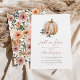 Högaktningsfullt med denna vintage inspirerade dammig ro hösten inbjudningskort för möhippan med en vattenfärgad illustration av en mjuk orange-pumpor med en blommigt-bukett och ett motsvarande blommönster på omsidan.