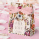 This elegant and modern "fall in love" girl's baby shower favor box features a wreath of fall/autumn leaves and flowers in arch shape on a rosewater pink background. Personalize it for your needs. You can find matching products at my store.