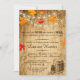 Fall Wedding Shower-inbjudan till ett landsbyggsbröllop med fallande löv, cowboystövlar, tunna och ljus över en träbakgrund. Det mindre bilderna är redigerbart och kan tas bort vid behov. Texten, teckensnittet och färg kan redigeras. Klicka på knappen "Anpassa" om du vill ha fler alternativ. Det här kortet matchar en samling i min butik.