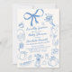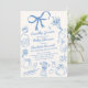 Fall locally grown baby shower invitation with hand drawn veggies, florals & sweet little pumpkin—perfect for farmers market themes, rustic autumn gatherings & boy baby showers. Soft blue tones add charming style. Personalize easily to welcome your little one in cozy seasonal fashion.
