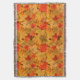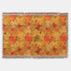 Lagrar av brunt, orange, rött och guld maple lämnar på en chokladbrun bakgrund.