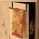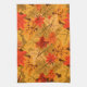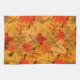 Lagrar av brunt, orange, rött och guld maple lämnar på en chokladbrun bakgrund.