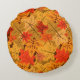 Lagrar av brunt, orange, rött och guld maple lämnar på en chokladbrun bakgrund.