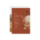 Den här eleganten och den roliga bröllopsinbjudan innehåller handmålad vattenfärg, bränd orange och terracotta löv, kräm och beige dahlias, och vacker rost-färgad ro perfekt för ett fall eller höst bröllop! Baksidan av inbjudan har ett foto för personanpassning. Sök efter matchande objekt i Koppar Fall Romantik-samlingen.