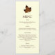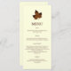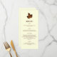 På en elfenbensbakgrund accentueras den här menyn av ett subtilt löv med monogrammet.