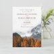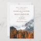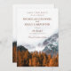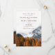 Det här sparar datumkortet är perfekt för falltemat bröllop i berget. Utformningen har träd och snöberg på baksidan av och terracotta-skogen. Kortets baksida har bruden och brudgummens monogram.