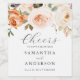 Dekorera flaska i vin med vår blommigt i höstträdgården, med vattenfärgad orange i persikofärgad blommigt. Anpassa med dina bröllop-detaljer i enkel och modern layout och elegant handskrivet stil-teckensnitt.