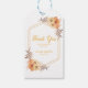 Tack för att du fyller elegant och klass tack för att du presenterar märkre med en orange blomma och brunt löv arrangemangt med modern guld-typografi på vit bakgrund.