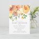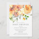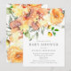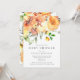En perfekt för söt babyduschinbjudan för fall med orange vattenfärgsblommor och grönt löv. Personligen är i serieteckensnitt för grått. Omvänt fylls med vattenfärgblommor av orange.