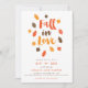 En automatisk typografisk inbjudan till vänner och familj för att möta ditt nya tillägg. Den här designen innehåller frasen "fall i kärlek" i det moderna handskrivna stil-penselskriptet, fallande illustrerade löv och "Sip 'n' See" i modernt teckensnitt. Inbjudan kan vara helt personlig med din händelseinformation och höst färger funktioner för orange, brun, senapsbaserad gult/hörn. Baksidan är i fast grått.