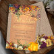 Vacker rostig orange och mörk burgundisk höst faller blommor och pumpar gräns med golden twinkle ljus över en beige-burk som bakgrund skapar ett charmfall i kärlek inbjudningskort för möhippan med ett handskrivet guld typografiskt skript för trendig. +++++++++ Enkel att anpassa med dina uppgifter! Lämplig för hösthöstfallsskorpa | LAND | Jordbruksföretaget brudens sida.