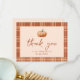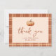 Tack för att du blev nedslagen i babyduschen! Det här platta tack-kortet är charmerande med plaid och pumpgrafik som fångar höstens mysiga anda. Visa dina babyduschgäster med tacksamhet med hjälp av det här vackra platta tackkortet. Den söta lilla pumpdockans konstruktion omgiven av klassiska buffelpaj ger verkligen glädjen att välkomna din lilla pumpa denna fall. Skriva en hjärtslitande ton inuti för att visa din uppskattning för gåvorna, bra önskemål och kärlek. Det här platta kortet är idealiskt för alla som tar emot eller deltar i en falltematisk barndusch. Det könsneutrala färg och designarbetet för alla baby. Skicka ut de här platta korten omedelbart efter ditt speciella firande för att sprida leenden!