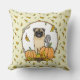 Fall Pug Hund (fawn) Pumpkins Löv Cute Kudde