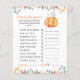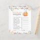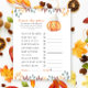 "En liten pumpa är på väg. Fira med den här tecknaden i baby, pumpa temat för babyduschen party! Vattenfärgssöt tecknad kawaii-pumpa med hösthatt (hatt) och höst löv. På baksidan av kortet finns höst löv.