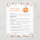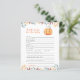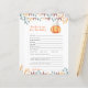 "En liten pumpa är på väg. Fira med den här tecknaden i baby, pumpa temat för babyduschen party! Vattenfärgssöt tecknad kawaii-pumpa med hösthatt (hatt) och höst löv. På baksidan av kortet finns höst löv.