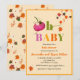 Fallpumpa flicka. Åh Baby Shower-inbjudningar med vacker stollig rosa-pumpa och fallande höstlöv och daisy i gult och orange. Original- och vattenfärgsdetaljer som jag målat upp! Med roligt och stark typografi. Vi firar föräldrarna att vara med den här speciella barnduschhösten.