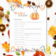 "En liten pumpa är på väg. Fira med den här tecknaden i baby, pumpa temat för babyduschen party! Vattenfärgssöt tecknad kawaii-pumpa med hösthatt (hatt) och höst löv. På baksidan av kortet finns höst löv.