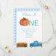 1:a födelsedagslumpuschinbjudan med blå lastbil och blå plaid-design, enkel att redigera text.