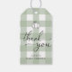 Fall Pumpkin Sage Grönt Gingham Tack Presentetikett