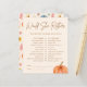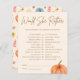 Ett härligt tillägg till en babydusch med ett charmingpumptema. Perfekt för en liten babydusch, det här spelet passar sömlöst in i fallande babydusch firande. Dess mångsidiga utformning gör den idealisk för sammankomster mellan gender och neutralt, liksom för särskilda duschar i pojke eller flicka. Spelet har både orange- och blåpumpsmotiv och tillför en lekfull och säsong-beröring som tilltalar dem som planerar en babydusch i boho. Den här engagerande aktiviteten är säker på att du kan underhålla gästerna och förbättra den festliga atmosfären i din lumpuschdusch.