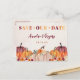 Fall Pumpkins Spara vårt vykort för datummeddelande med fallande blommigtar och pumpor i rostbrun, tangerin orange, djup merlot, burgundy och vintergräddtoner.