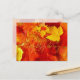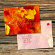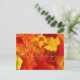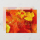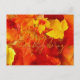 Röda löv vykort för Thanksgiving hälsning. Gulten på framsidan har en röd skugga. Gult, orange och löv i rött kapsel täcker kortet. Ta med ett meddelande på baksidan eller ta bort provformuleringen för att beställa tomt.