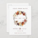 En söt-rustik sparar datumet för ditt kommande fall-bröllop som innehåller ditt bröllop-datum i en vattenfärgsutandning av blommigten, med burgundi, rost, orange och elfenbensblommor och grönt löv.