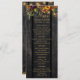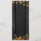 Redigerbar meny för mottagning av bröllopstext som innehåller botaniska höstbotaniska ämnen på en mörk brun lingbakgrund med sträng ljus. Perfekt för din hösthöstsäng, elegant rustic land, utomhusträdgård eller lantgård bröllop.