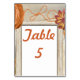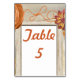 En fallande, rustik utformning, det här kortet har en orange och ett brunt tema. Vackra blommor och brun träbild ställe din beställning i dag! Bord-kort: BröllopsbyRhoadie Blommigt-teckning: Oberholster Venita