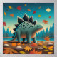 Fall Stegosaurus med Löv: Cute Wall Art Poster