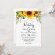 Den här bröllopsinbjudan innehåller en vattenfärgsgrafik av elegant solblommor och grön över toppen. Det här är perfekt för ett sommar- eller fall-bröllop.