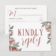 Gör det enkelt för dina gäster att i stil svara med denna unika moderna OSA kort, vackert försedd med rustik botanisk löv i varma terracotta och mjuka grönt. Utformningen har ursprungliga vattenfärgsillustrationer som frammanar en naturlig, romantisk estetisk perfekt för boho, rustik, utomhus eller höst bröllop. Kortet är försett med vit bakgrund och innehåller elegant, lättläst typografi och är helt och hållet anpassade till kostym med dina bröllop-uppgifter. Oavsett om du planerar en trädgårdsceremoni, ett skogsevenemang eller ett modernt landskap firande, så är det här OSAN perfekt med att samordna bröllop-stationerna från samma samling.