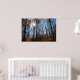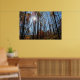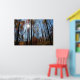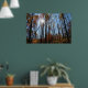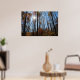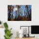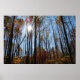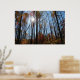 Detta poster sol som skiner genom höstens höga träd. Färga löv, blå himmel.
