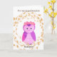 Ett kort för barnbarndotters födelsedagspresent med ett vackert uggla och lagret i varmt färg för hösten. Du kan lätt personifiera framsidan av det här barndotterkortet med hennes namn. Du kan också enkelt ändra och anpassa inmatningsmeddelandet om du vill. Baksidan av födelsedagskortet i uggla säger Grattis på födelsedagen tillsammans med året.