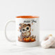 Kaffe mugg visas i ett sött fall-uggla-konsttryck. Anpassa det här objektet och välj ett annat mugg stil eller köp som det är. Licensierad bild