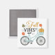 Utformningen "Fall Vibes" är en charmerande och visuell illustration som på ett perfekt sätt fångar höstens innersta väsen. Konstruktionens centrala inslag är en vintage-stil-cykel som återges i ett mjukt, pastellblått färg. Cykeln har ett klassiskt, reflekterande utseende med böjda handtag och ett basket som är fäst vid framsidan.