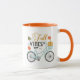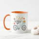 Utformningen "Fall Vibes" är en charmerande och visuell illustration som på ett perfekt sätt fångar höstens innersta väsen. Konstruktionens centrala inslag är en vintage-stil-cykel som återges i ett mjukt, pastellblått färg. Cykeln har ett klassiskt, reflekterande utseende med böjda handtag och ett basket som är fäst vid framsidan.