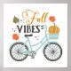 Utformningen "Fall Vibes" är en charmerande och visuell illustration som på ett perfekt sätt fångar höstens innersta väsen. Konstruktionens centrala inslag är en vintage-stil-cykel som återges i ett mjukt, pastellblått färg. Cykeln har ett klassiskt, reflekterande utseende med böjda handtag och ett basket som är fäst vid framsidan.