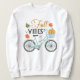 Utformningen "Fall Vibes" är en charmerande och visuell illustration som på ett perfekt sätt fångar höstens innersta väsen. Konstruktionens centrala inslag är en vintage-stil-cykel som återges i ett mjukt, pastellblått färg. Cykeln har ett klassiskt, reflekterande utseende med böjda handtag och ett basket som är fäst vid framsidan.