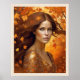 Fall Vind Kvinna i Orange Löv Blue Ögon Woman Poster