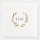 En underbar vattenfärgad lagerkrans i höst färger av grönt och tegelrött omger initialer i denna enkla elegant pappra napkin. Det är ett fantastiskt val för bröllop, förlovningsfester, möhippor och mycket annat. Anpassa textmallen med initialerna.