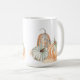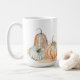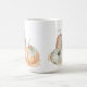 Ett kaffe mugg dekorerat med vattenfärgspumpor.
