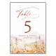 Watercolor autumn wildflower meadow and mountain with modern script, Earthy tones of terracotta, rust, ochre, and burgundy, warm and romantic, great table number cards for rustic fall wedding, mountain destination wedding, and boho floral wedding