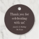 This elegant round favor tag features a rich earthy brown background with serif typography - "Thank you for celebrating with us" — finished with customizable couple names and wedding date in delicate italic script. A warm, modern alternative to traditional wedding favor tags, this deep mocha tone pairs beautifully with fall and autumn palettes, rustic venues, and minimalist wedding aesthetics. Simply update the names and date to make it yours.