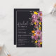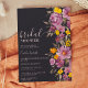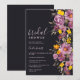 Låt oss hylla bruden att vara med den söt handen målad vintern inbjudningskort för möhippan. Med vackra handmålade lila blommor-vattenfärger, orange och gult blommar och grönt och ett elegant och modernt penselskriptteckensnitt. Perfekt till höstvintern, jul bröllop på mörk svart.