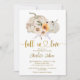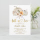 Rustik och elegant bröllopsinbjudan med handmålad akvarell vita pumpor, prästkragar och solrosor med gyllene "falla i kärlek"-text och höstblommig mönster i bakgrunden. Vänligen kontakta oss via chatt om du behöver anpassning eller matchande artiklar.