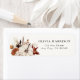 Hösttema returadressetiketter med en akvarellbukettdesign med neutral höstfärgning och en vit pumpa.