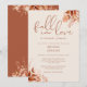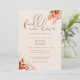 En elegant och stilfull inbjudan till babyfest med elegant terrakotta-typografi och vacker, rustik botanisk växtlighet. Designad av Thisisnotme©